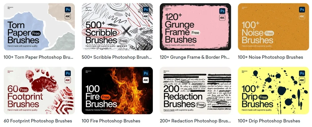 Все кисти доступны бесплатно, но часть с лицензией только на некоммерческое использование. Точный формат смотрите по ссылкам в разделе «License».