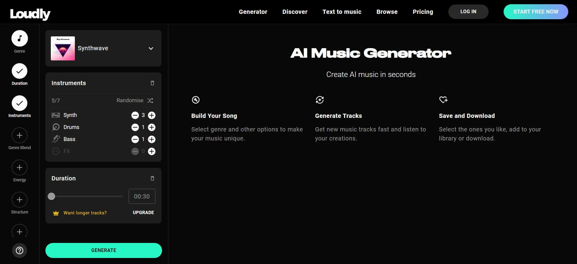 Бесплатно можно создать всего по 2 музыкальные композиции длительностью до 5 минут: 2 трека по текстовому запросу и 2 трека по жанру музыки. Готовые треки можно скачать бесплатно. Для дальнейшего использования сервиса нужно оформить платную подписку.