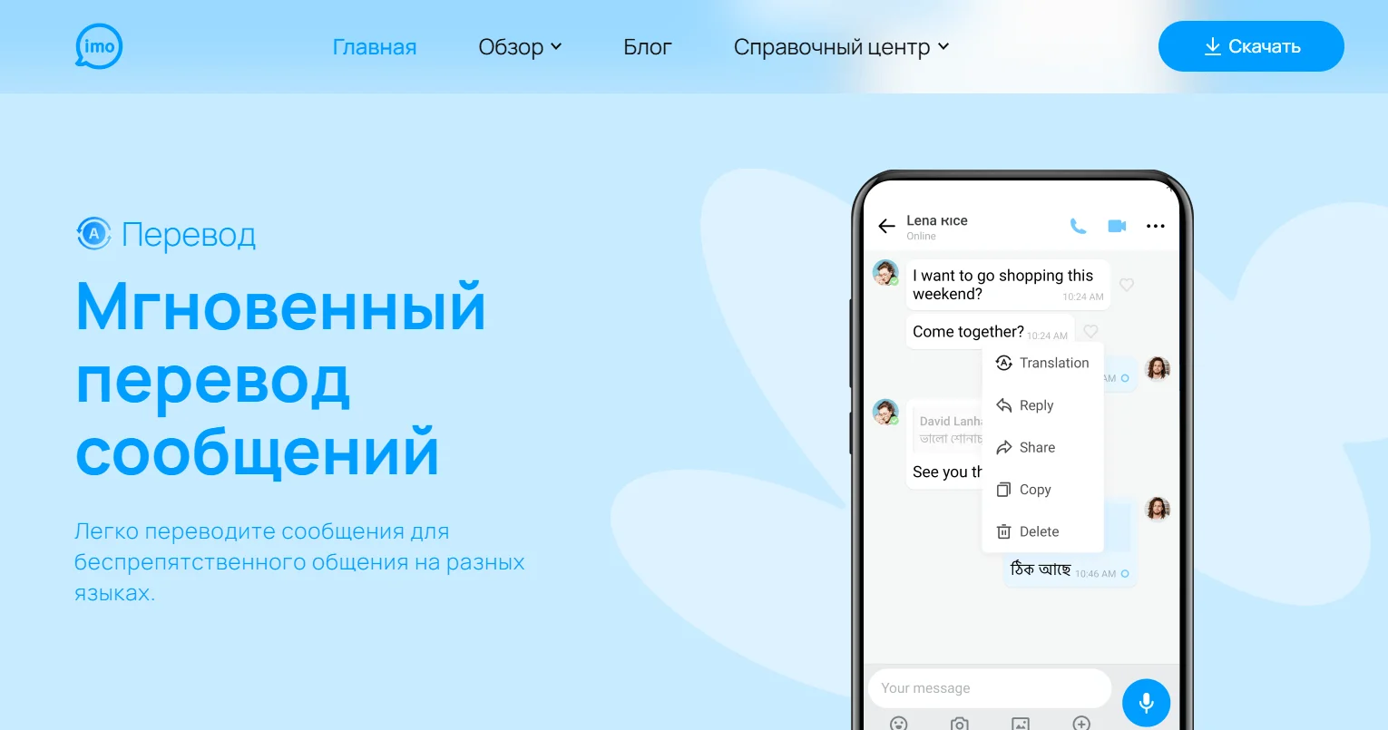 Бесплатный мессенджер IMO создан для простого и безопасного общения. Особенность сервиса в том, что его можно использовать через любой браузер и с любого ПК. Для этого необязательно скачивать приложение. Все данные хранятся на сервере.