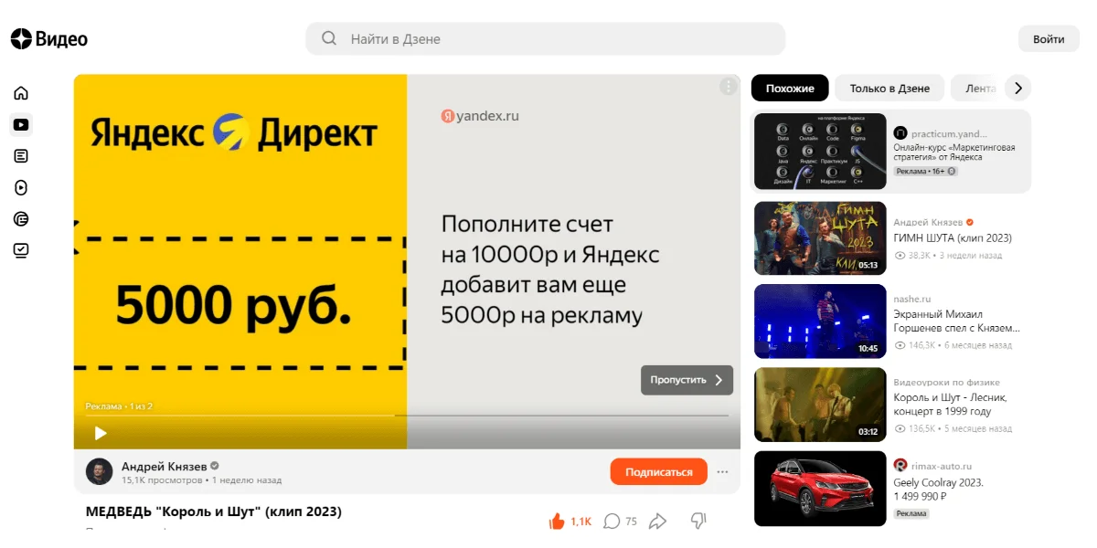 Интересная платформа для самых разных ниш. Умные алгоритмы Дзена позволяют формировать индивидуальную ленту для каждого пользователя. В первом квартале 2023 году аудитория площадки насчитывала более 80 млн человек.