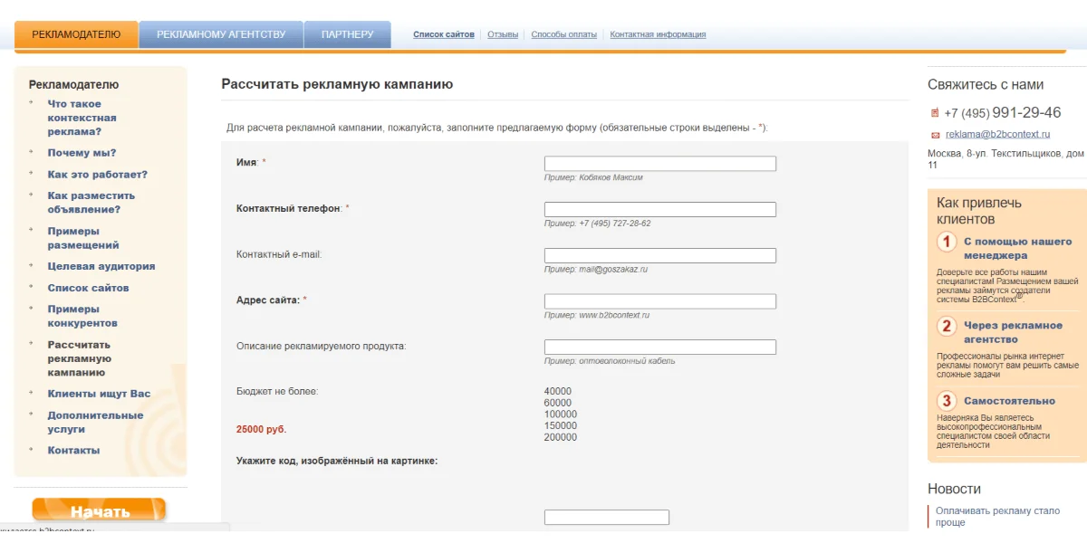 B2Bcontext — это нишевая контекстная рекламная сеть, специально разработанная для бизнесменов и предпринимателей, активных в сегменте B2B. Сервис отличается тем, что сосредоточен исключительно на целевой аудитории, заинтересованной в бизнес-взаимодействиях.