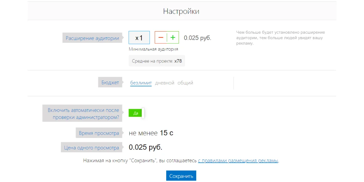 Стоимость. Цена рекламной кампании начинается от 75 000 рублей.