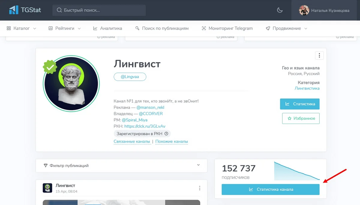 Теперь детально посмотрите, сколько по каждой публикации лайков, репостов, комментариев. Например, для Telegram-каналов это удобно делать через сервис TGStat: можно не заходить в мессенджер и смотреть расширенную статистику.