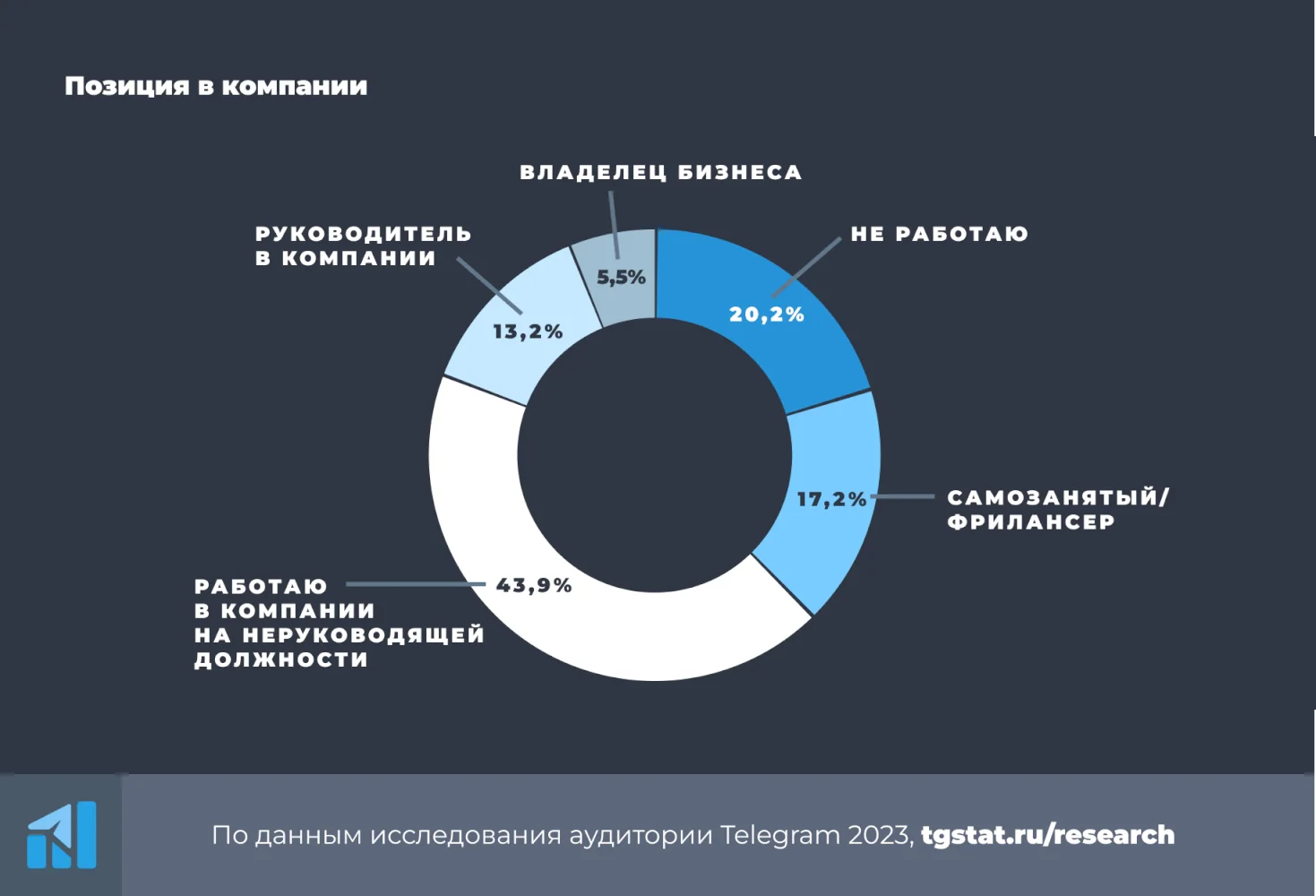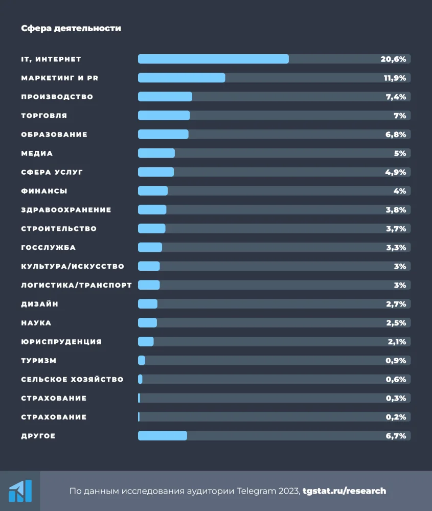 На самом деле, с 2019 года аудитория мессенджера мало поменялась: им также пользуются люди с высшим образованием, работающие в основном в IT и маркетинге. При этом большая часть пользователей, как и раньше, работают по найму. Доля самозанятых выросла незначительно — с 14% в 2021 году до 17% в 2023 году.
