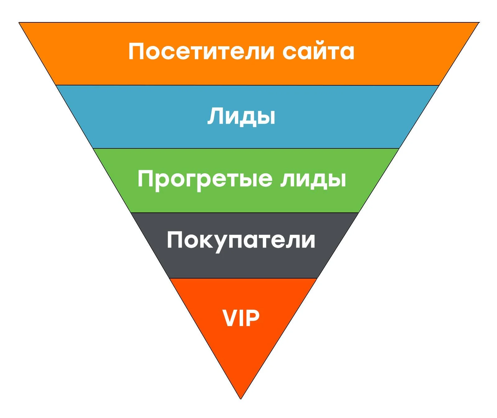 Нельзя создать универсальную воронку под любой бизнес или любую задачу. Каждая ситуация уникальна по своему. Но одна структура, которую нужно использовать везде, существует. Это сегментация и квалификация пользователей (ред. оценка потенциальных покупателей по их способности, готовности и желанию купить продукт или сервис).