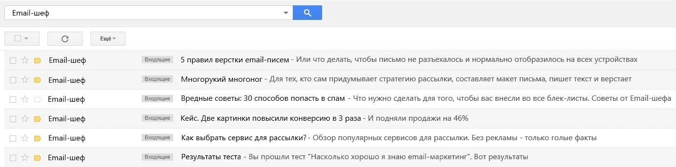 С результата теста запускается welcome-цепочка «Email-шефа». На почту приходят письма с весьма полезным контентом: