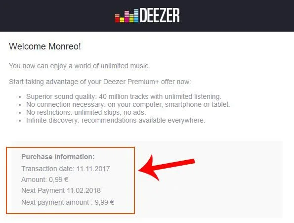 Например, музыкальный портал Deezer дает бесплатную Premium-подписку на первые 15 дней. После этого запускается welcome-серия писем: вас учат пользоваться платформой, рассказывают о глубоких настройках и предлагают подписаться.