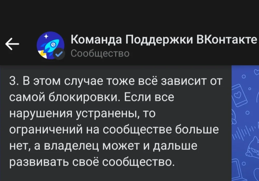 После разблокировки группа будет работать, как раньше — никаких проблем с привлечением подписчиков и продвижением быть не должно — об этом сообщил специалист техподдержки.