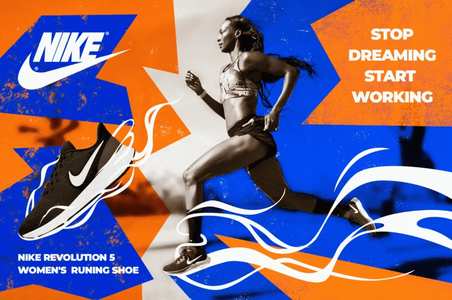 Спортивные бренды также активно работают с визуальным наследием Баухауса. Adidas, Nike и Puma используют простые формы, модульные композиции, контрастные цветовые решения и сильную типографику в рекламных кампаниях. Такой подход помогает быстро передавать сообщение, работать с ритмом и движением и сохранять узнаваемость в разных форматах — от билбордов до постов в соцсетях.