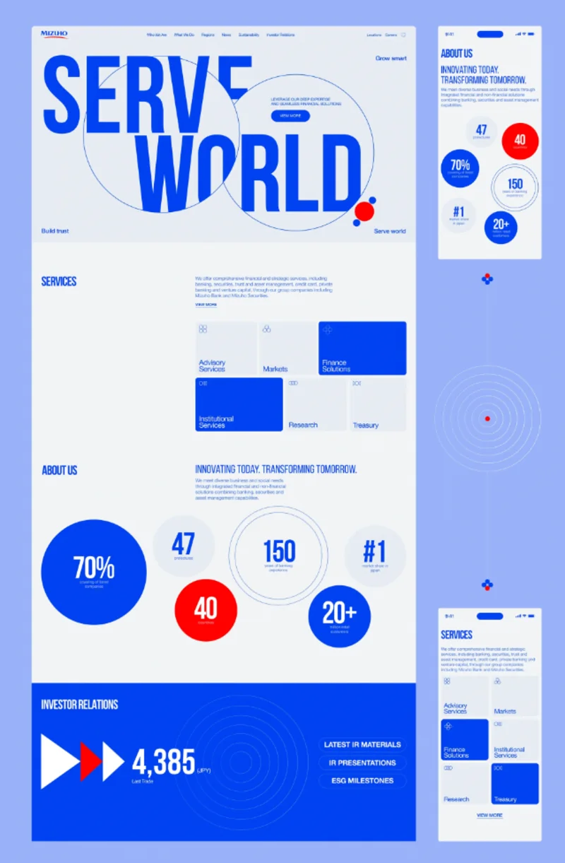 Особенно заметно влияние Баухауса в дизайне веб-интерфейсов. Современные сайты строятся на тех же принципах: сетки, модульная структура, чёткая типографика и минимальное количество декоративных элементов. Такой подход помогает быстрее ориентироваться на странице, считывать иерархию и понимать, куда смотреть и что делать дальше: особенно. Это особенно важно для разветвленных информационных сайтов, онлайн-сервисов, интернет-магазинов. Нередко в дизайне сайтов используют геометрические фигуры, простые цвета и композиции, напоминающие плакаты Баухауса.