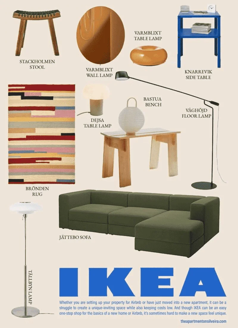В мебельном дизайне принципы Баухауса легко узнать у IKEA. Простые конструкции, модульность, понятные формы и ориентация на массовое производство — всё это близко идеям школы. Мебель IKEA проектируется так, чтобы быть удобной, воспроизводимой и подходить под разные сценарии использования, а не работать как декоративный объект.