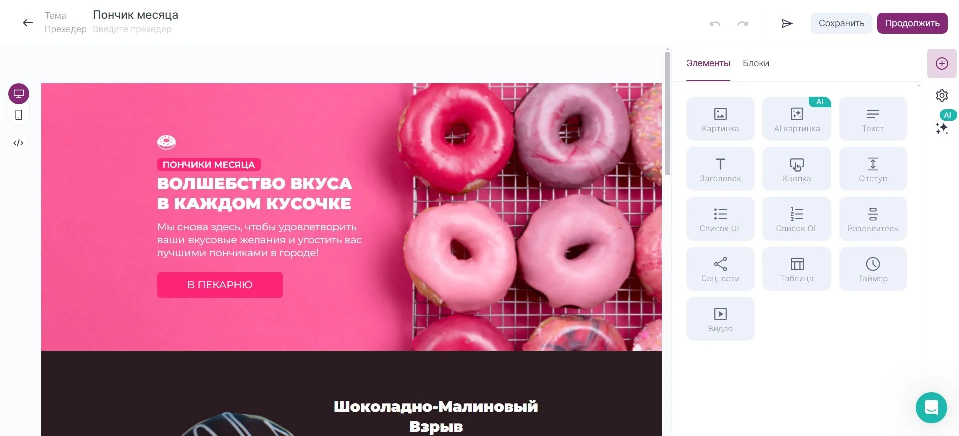 Встроенный AI-генератор контента, который поможет нарисовать картинку и сгенерировать текст для письма. Это сэкономит много времени и денег.