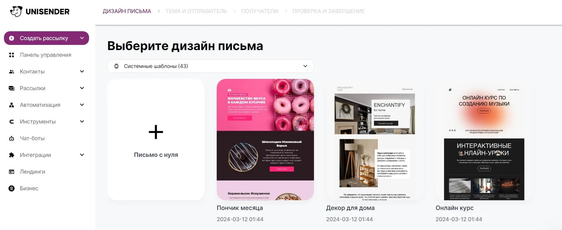 В Unisender можно настраивать и отправлять массовые, триггерные и транзакционные рассылки.