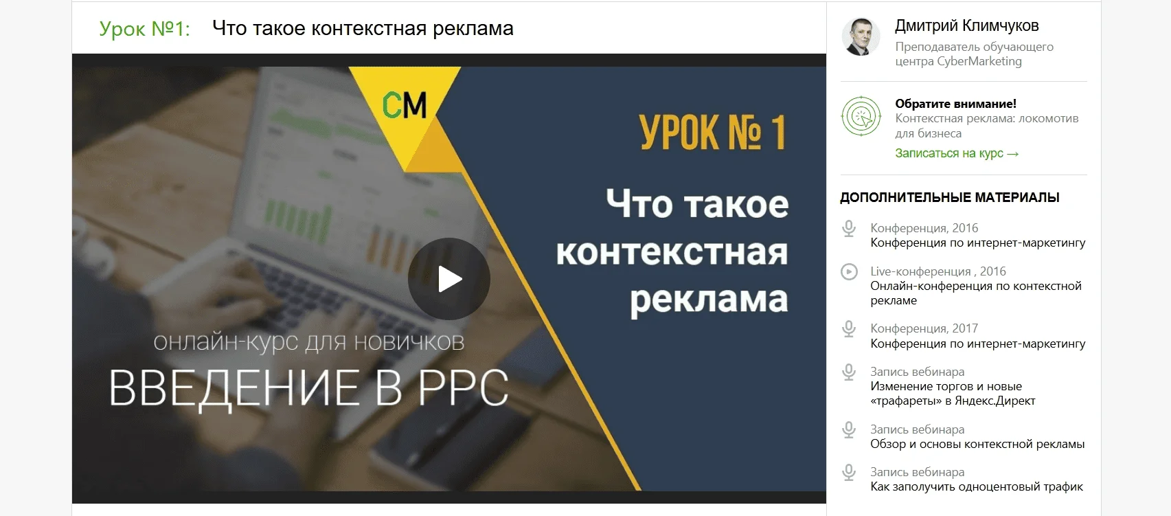 Сайт: https://www.cybermarketing.ru/video-courses/promo/kontekstnaya-reklama.html