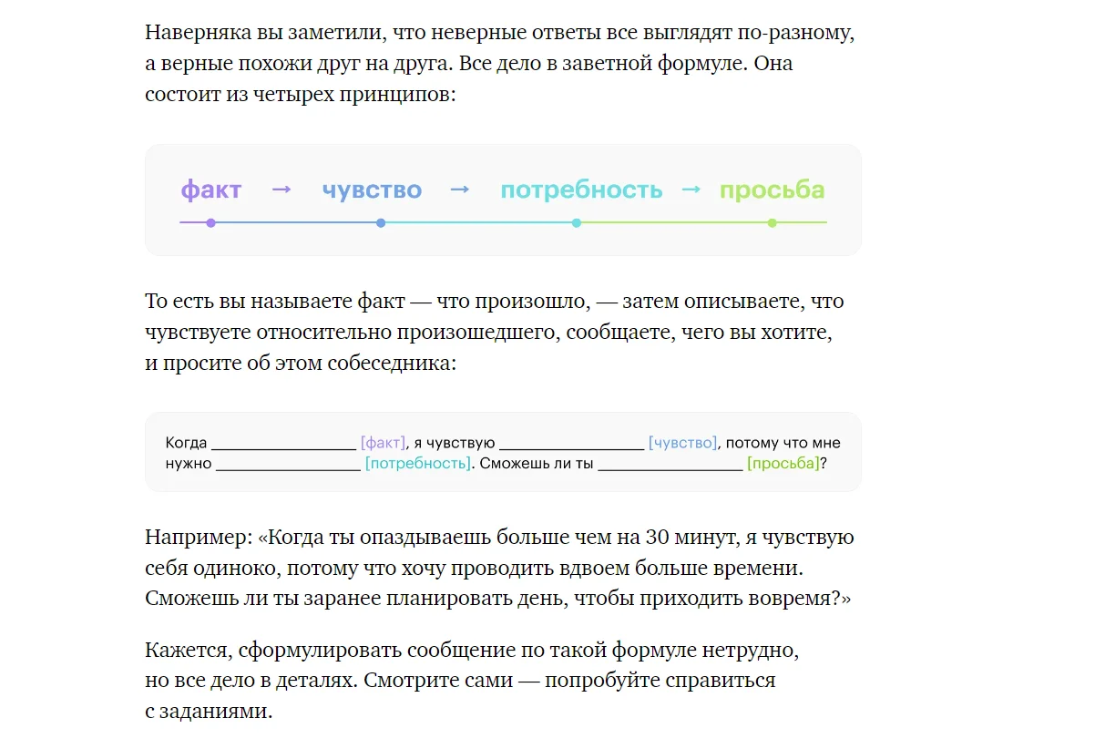 После уроков можно пройти тест чтобы понять, готовы ли вы применять принципы общения в повседневной жизни. А за отзыв дают скидку 40% на любой платный курс в Учебнике.
