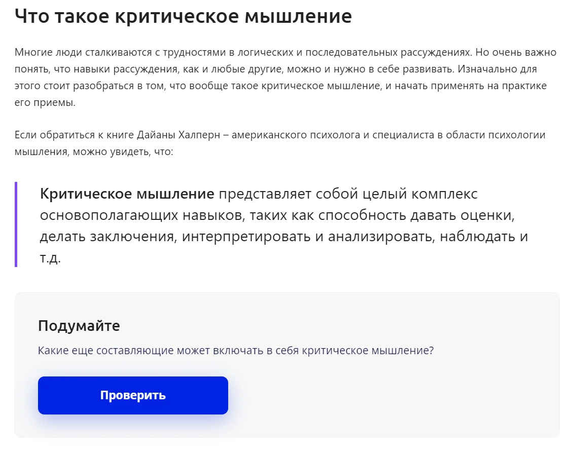 Формат: статьи-лонгриды с проверяющими вопросами.