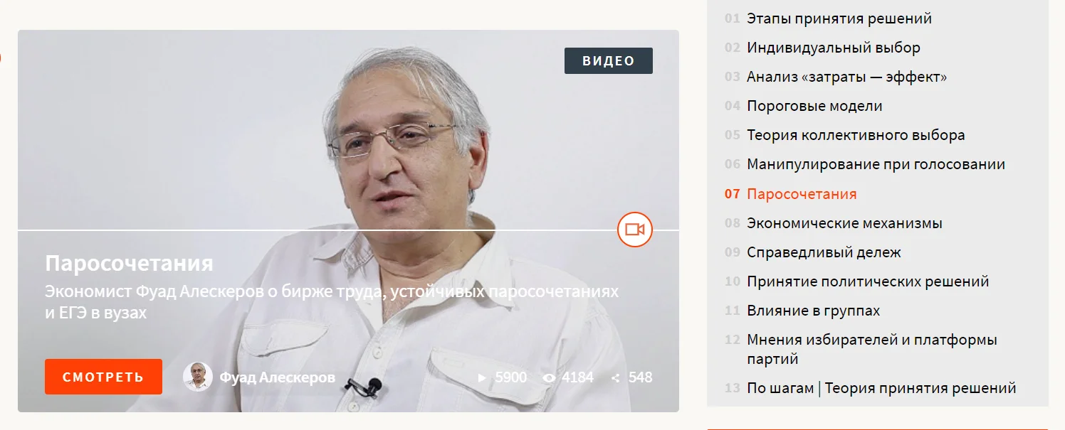 Чему учат. Всего в курсе 12 лекций от математика о фундаментальных принципах, влияющих на принятия решений. Отдельный акцент авторы сделали на политике. Например, есть темы «Манипулирование при голосовании» и «Мнения избирателей и платформы партий».