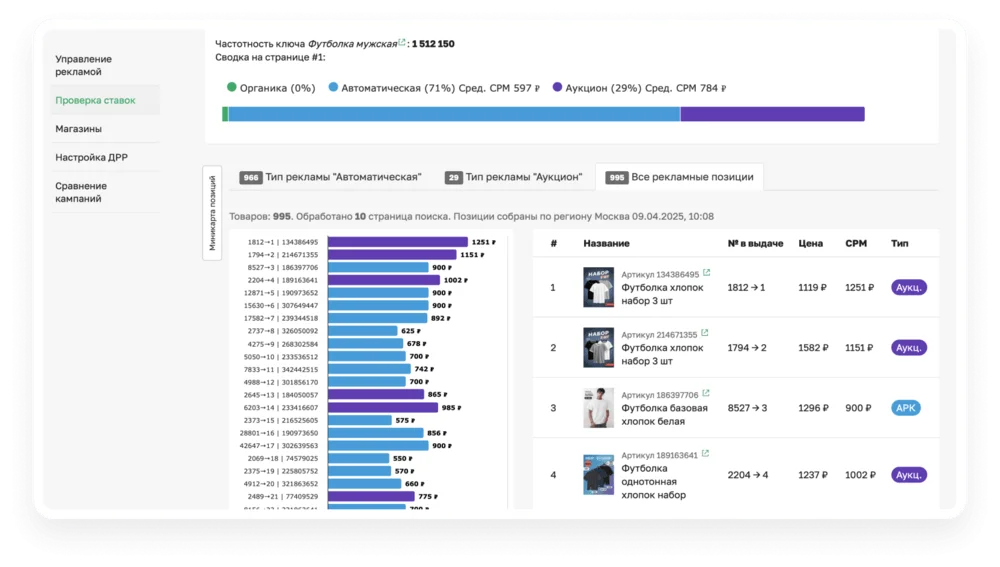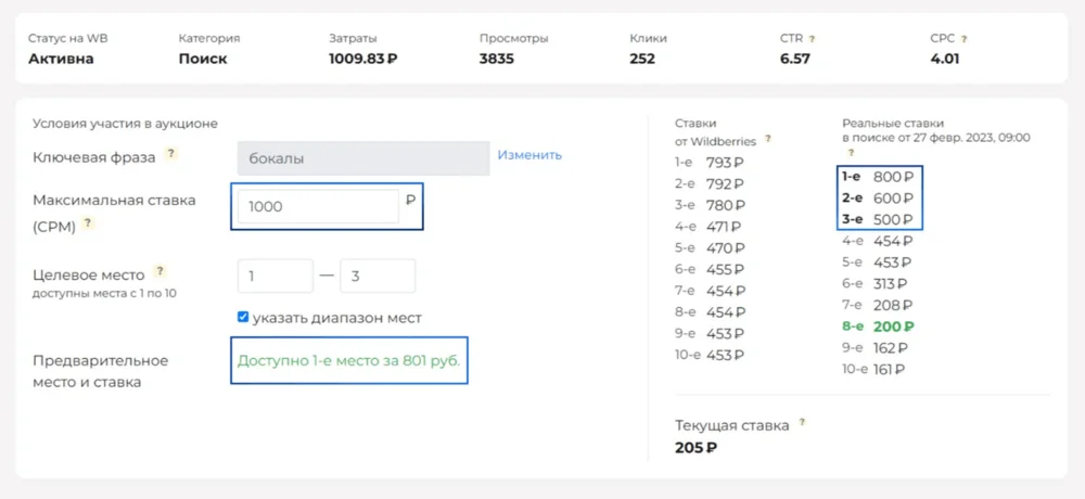 Реклама на Wildberries устроена по аукционной модели. Продавцы конкурируют между собой за показы, выставляя ставки за тысячу показов карточки товара. Чем выше ставка, тем больше шансов, что товар попадет в выдачу по поиску или отобразится в рекомендациях. Проблема в том, что реальная стоимость показа всегда скрыта: маркетплейс может предлагать завышенные ориентиры, а ставки конкурентов меняются буквально каждую минуту. Из-за этого легко переплатить и потерять показы и позиции.