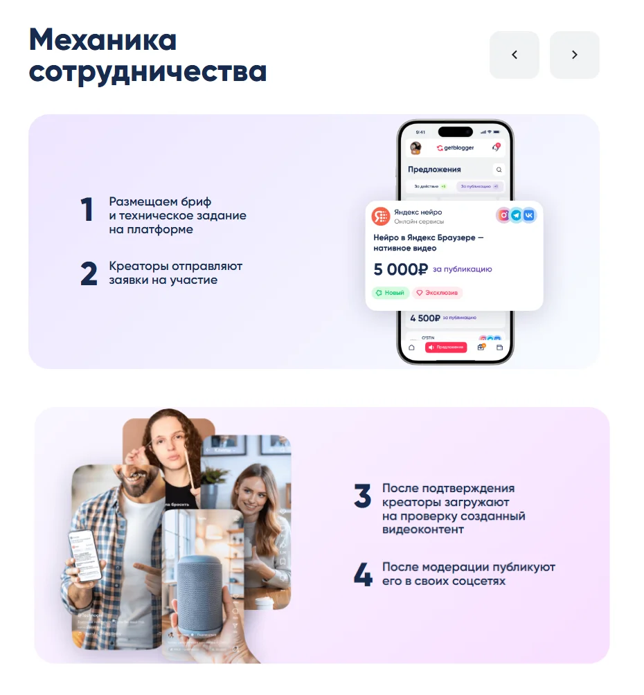 Чем интересна площадка. Этот сервис ориентирован работать по схеме рекламного агентства: вы заполняете бриф, а платформа рассчитывает стоимость, подбирает блогеров, регулирует порядок и условия сотрудничества, а затем выставляет счет за услуги.