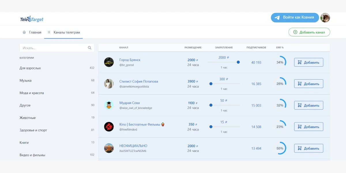 Одна из самых крупных бирж рекламы в Telegram. Ею пользуются крупные компании, например, МегаМаркет, Контур и SkyEng. Разработчики обещают, что в их базах нет каналов с накрученными подписчиками и ботами. Но проверять канал перед тем, как вкладывать в него деньги, всё же стоит.