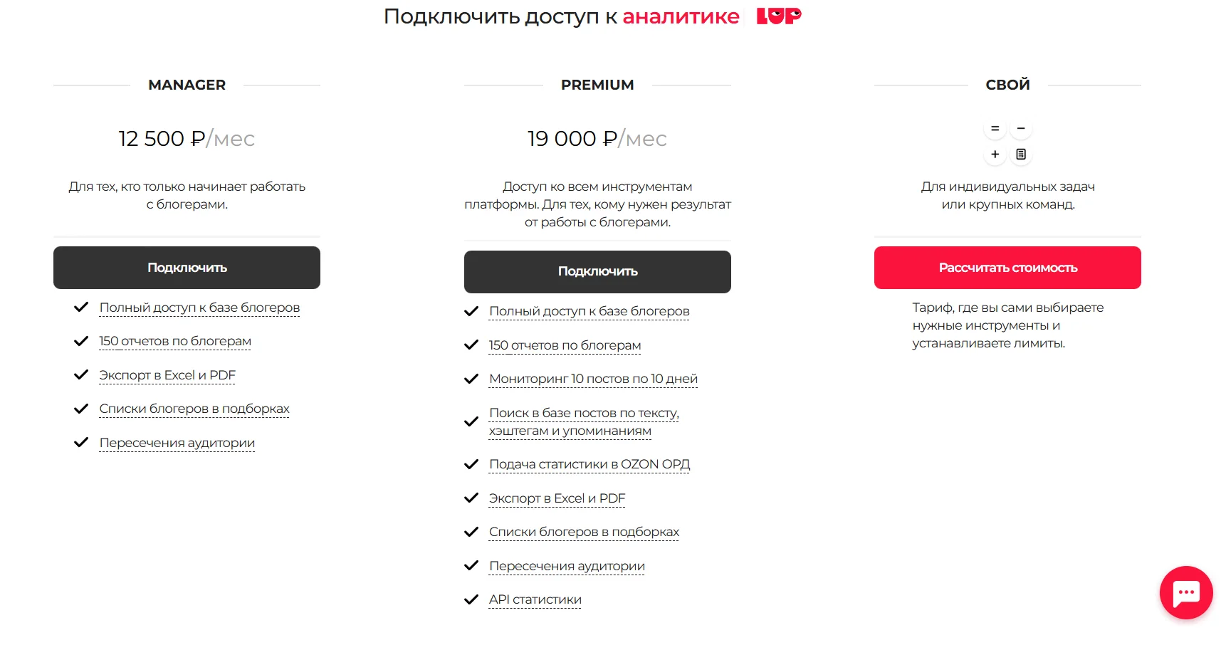 При подключении платных тарифов можно увеличить доступ к базе блогеров, делать более экспорт из файлов Excel и PDF, выгружать 150 отчётов по блогерам, анализировать пересечение аудитории и многое другое.
