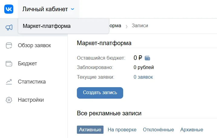 Регистрация. Войдите в личный кабинет и кликните на пункт «Маркет-платформа». Затем создайте рекламный пост или используйте тот, что уже публиковали ранее. Специальной регистрации или танцев с бубном не требуется.
