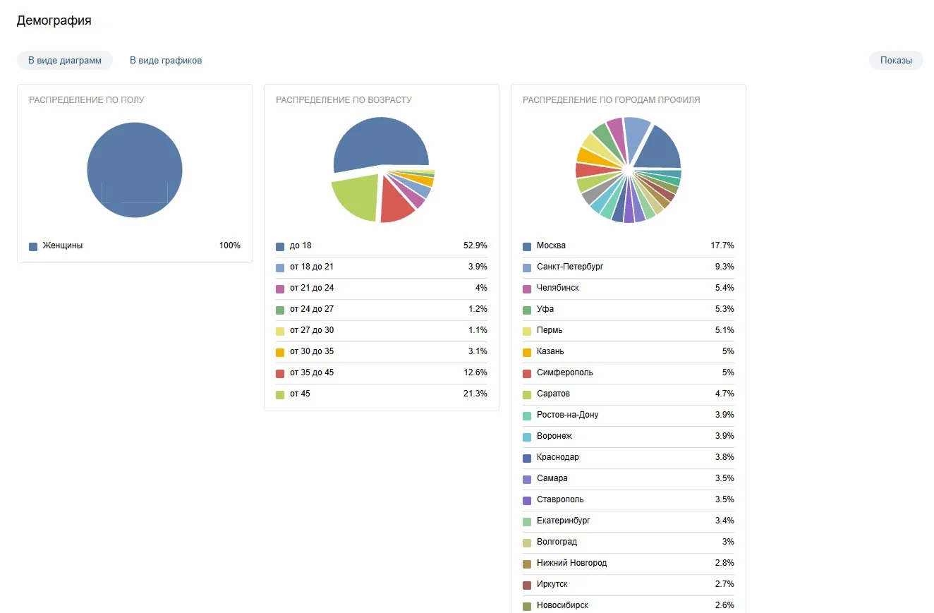 Есть фильтры по конкретной тематике, формату размещения, диапазонам показателей или соотношения полов.