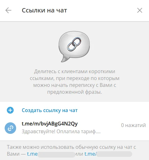 Также в Telegram появились специальные ссылки для бизнес-аккаунтов. К каждому линку можно добавить автоматическое сообщение. При нажатии на такую ссылку сразу откроется чат с компанией в Telegram, а в поле ввода у пользователя появится текст предложенного сообщения.