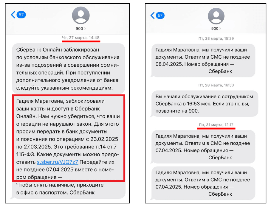 Когда пришло SMS, в котором просили предоставить документы с пояснениями, я все подготовила, отправила и получила номер обращения. Дальше — тишина на 10 дней. Связывалась с сотрудниками банка по телефону, приходила в офис с документами, чтобы снять наличные с карт, и надеялась, что блокировку снимут, но…