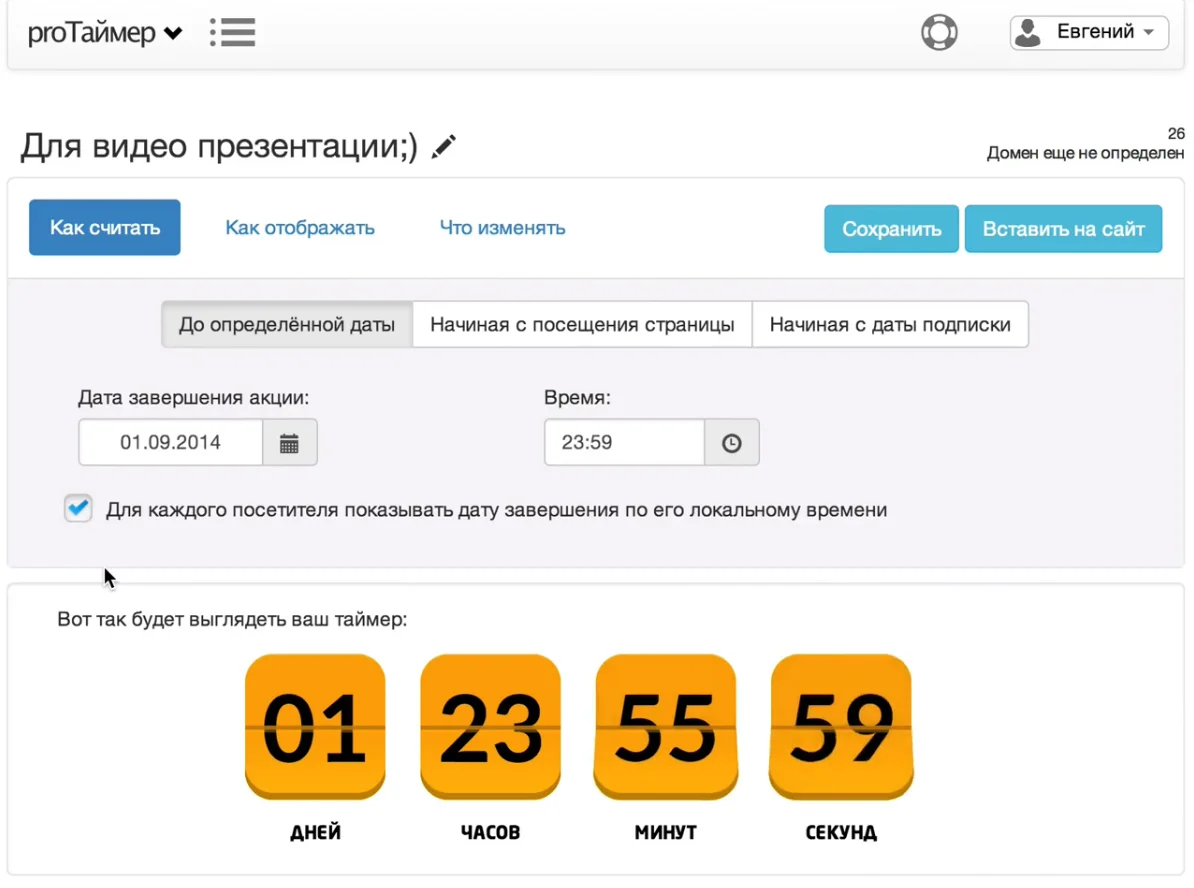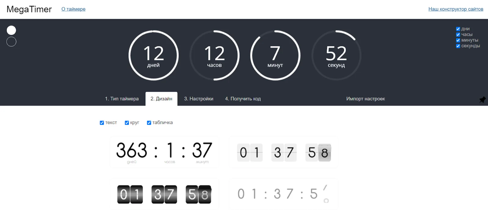 Чем полезен. Генерирует HTML-код таймера обратного отсчёта для сайта. Есть 9 шаблонов с разным дизайном, который можно настроить по своему вкусу. Поддерживает функции зацикливания (счетчик обнуляется каждый день) и отложенного запуска.