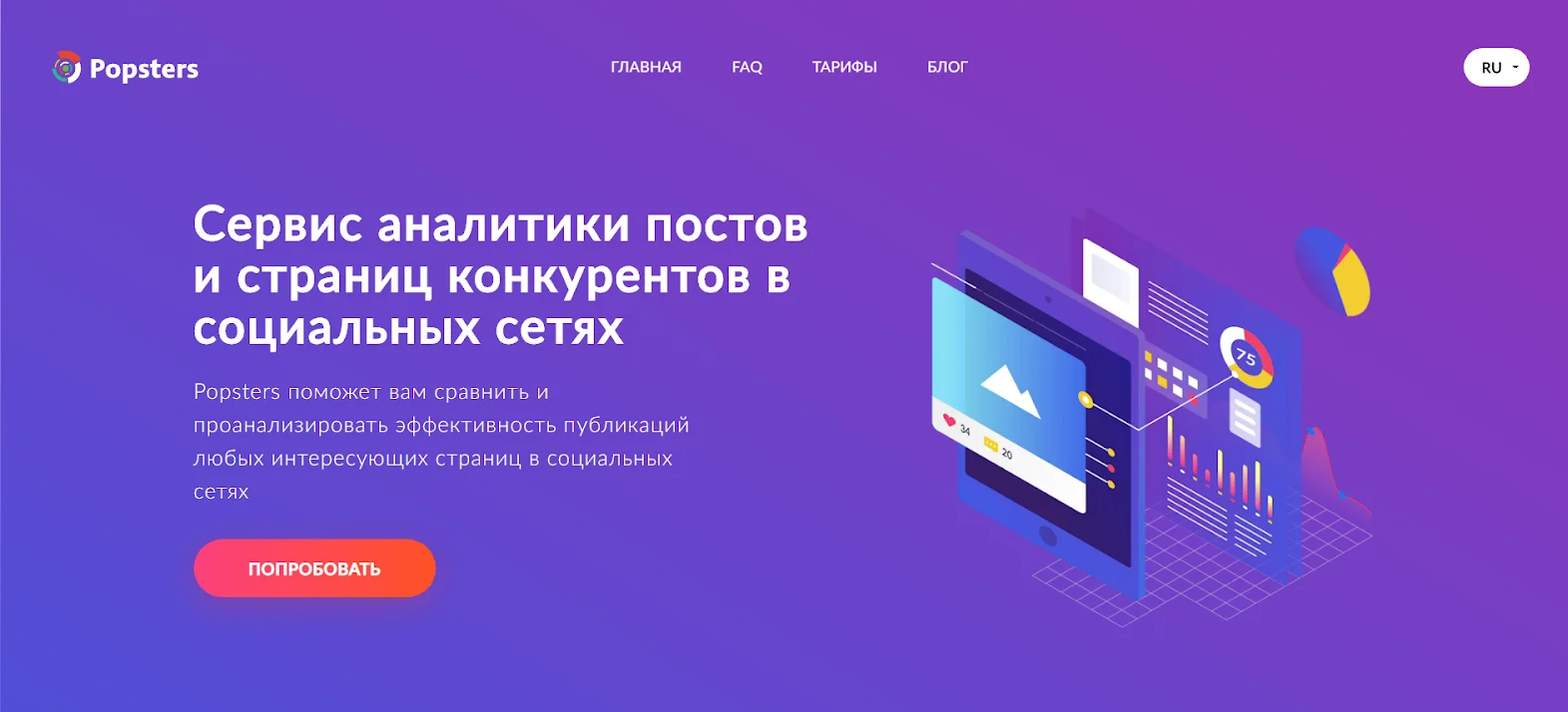 Чем полезен. Поможет проанализировать посты и страницы конкурентов в соцсетях, чтобы узнать, что они приготовили для клиентов на Чёрную пятницу. Popsters позволяет одновременно изучать страницы разных компаний и сообщества из разных социальных сетей.