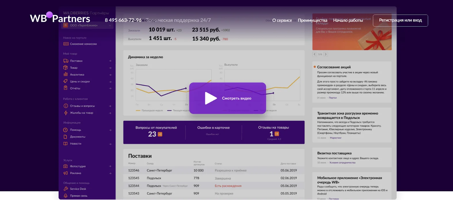 Чем полезен. Позволяет продавать товары на маркетплейсе Wildberries.ru. Партнёр получает доступ на портал, где может управлять товарооборотом и смотреть статистику продаж. Оформление заявки занимает до трёх дней.
