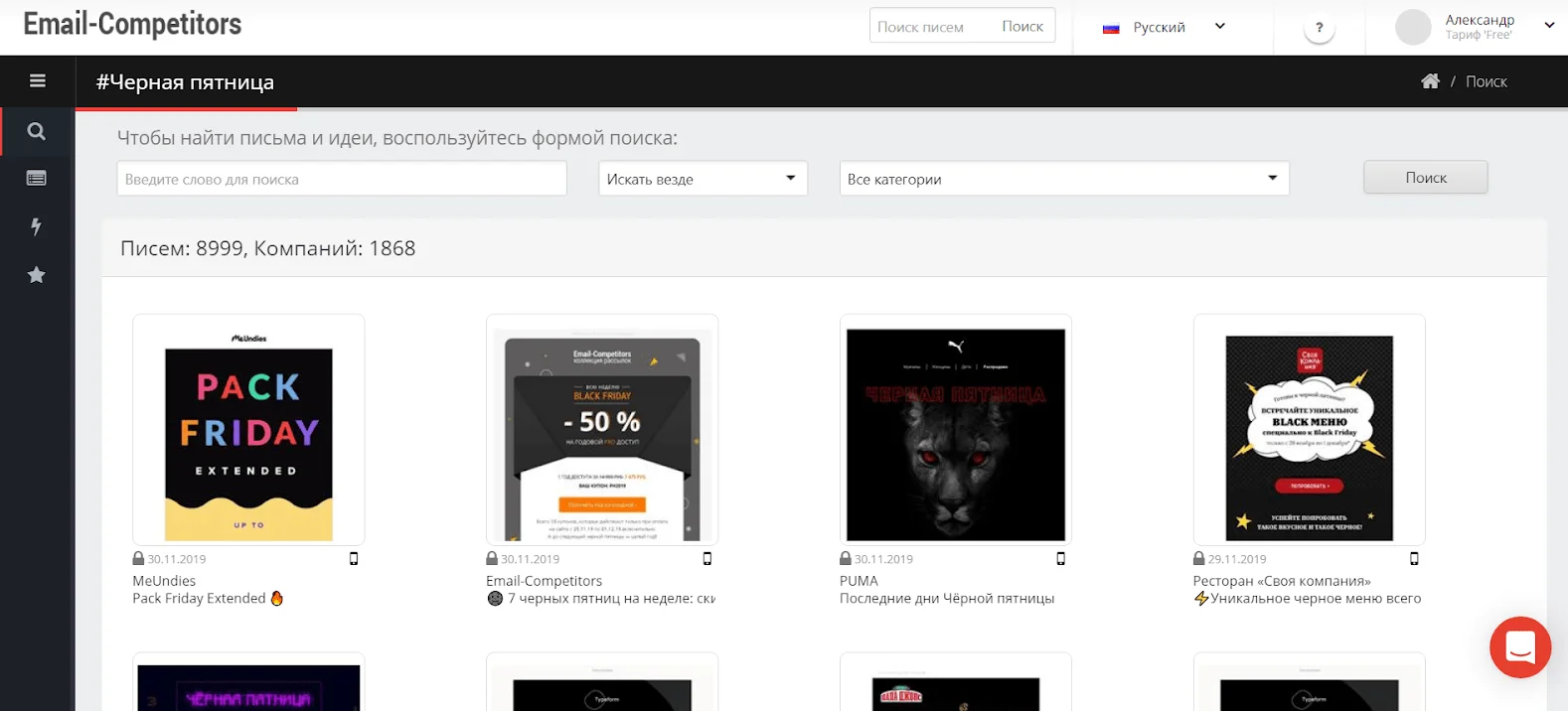 Чем полезен. Большой архив рассылок, который содержит более 3 млн писем от почти 10 000 российских и мировых брендов. В сервисе хранится больше 9000 писем, посвящённых Чёрной пятнице. Это хорошее подспорье для поиска идей при подготовке собственной рассылки.
