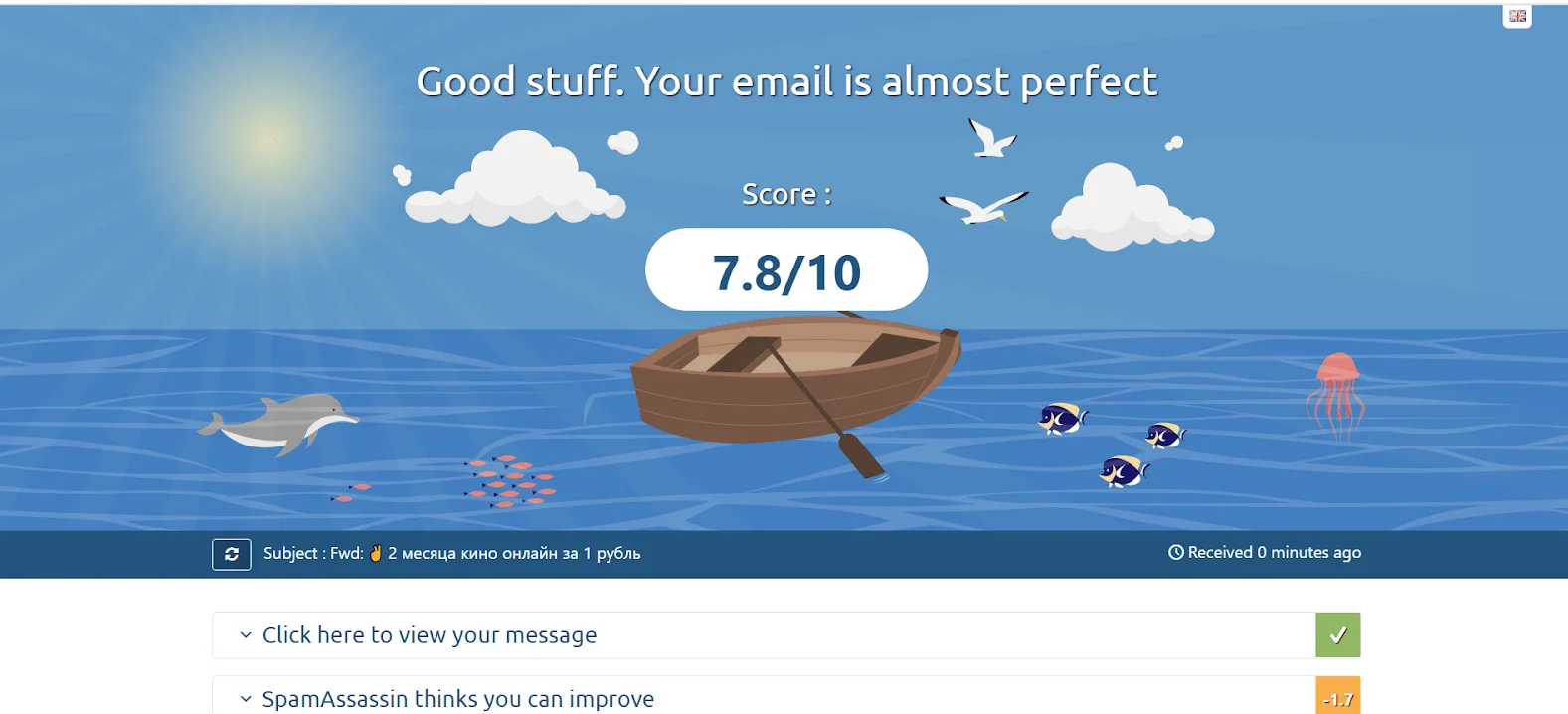 Чем полезен. Поможет не угодить в спам в разгар продаж на Чёрную пятницу. Вы отправляете макет на тестовый адрес, а сервис выставляет ему оценку от 0 до 10. Если оценка не очень и письмо похоже на спам, Mail-tester подскажет, как его улучшить.