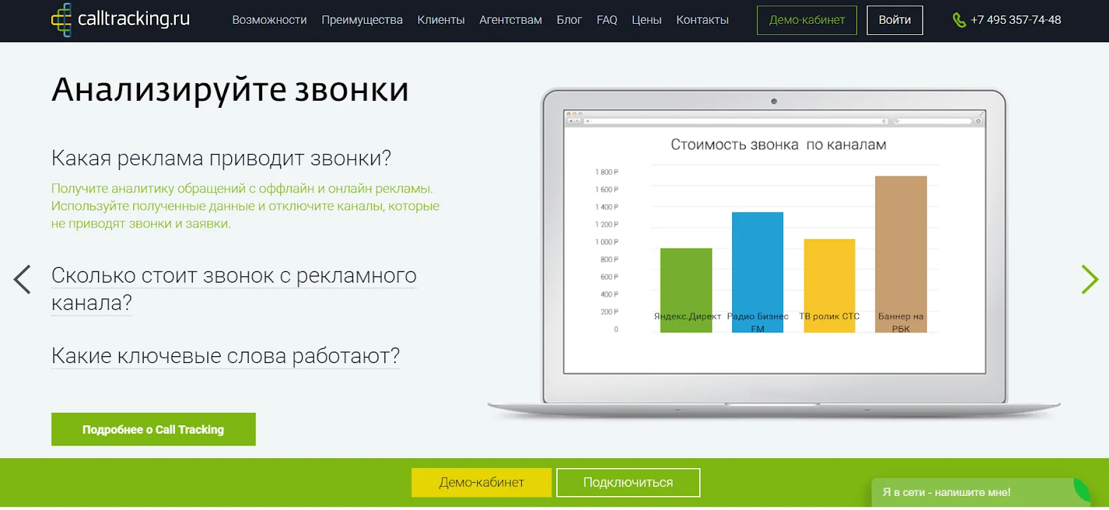 Чем полезен. Определяет, сколько стоит один звонок с каждого рекламного источника, с каких ключевых запросов чаще всего звонят. Помогает оптимизировать рекламный бюджет. Рассчитывает эффективность менеджеров.