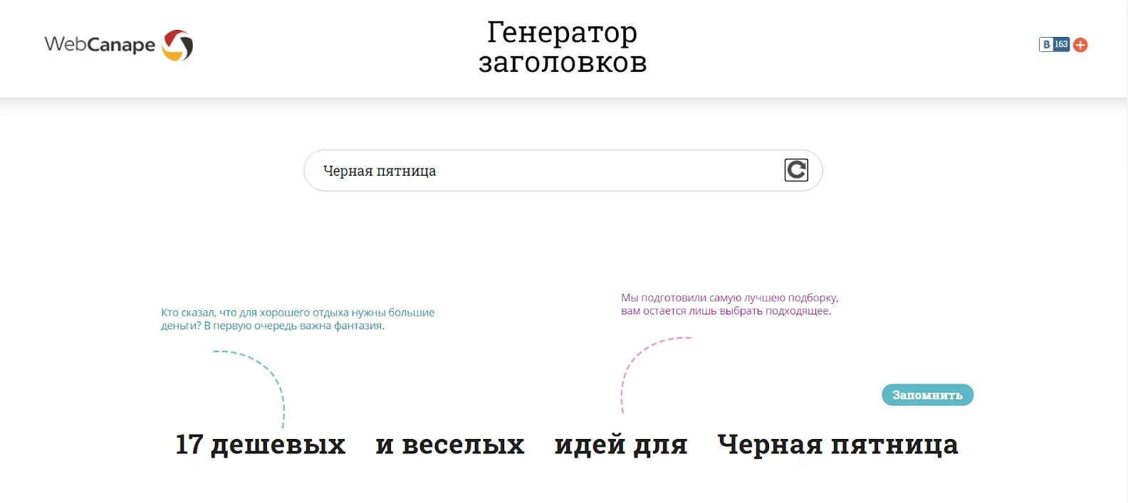 Чем полезен. Забавный генератор заголовков. Вводите ключевое слово — и получаете вариант названия с комментариями. Можно сколько угодно раз нажимать на кнопку обновления и сохранять все понравившиеся варианты.