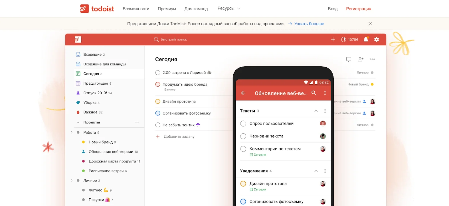 Чем полезен. Популярный сервис для управления задачами, работой со списками дел. Для каждой задачи можно назначить проект, приоритет, прописать теги, настроить напоминания, добавить вложенные файлы. Есть интеграции с Dropbox, Google Disk, Gmail, Google Календарь. Поддерживает работу в команде.