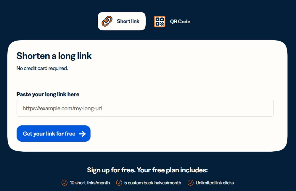 Чем полезен. Один из самых популярных сервисов для сокращения ссылок. В бесплатный тариф входит 10 сокращений в месяц и неограниченное количество кликов по этим ссылкам — удобно. Помимо сокращатора работает и как генератор QR-кодов.