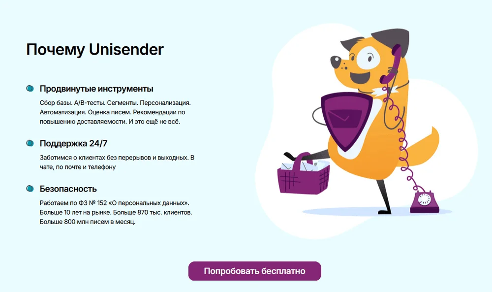 Чем полезен. Сервис email-рассылок. Есть всё, что нужно для email-маркетинга: всплывающие формы, конструктор с AI-помощником, детальная аналитика, автоматические рассылки, А/B-тесты, готовые интеграции с соцсетями, мессенджерами, CMS и CRM. И классная коллекция шаблонов к Чёрной пятнице.