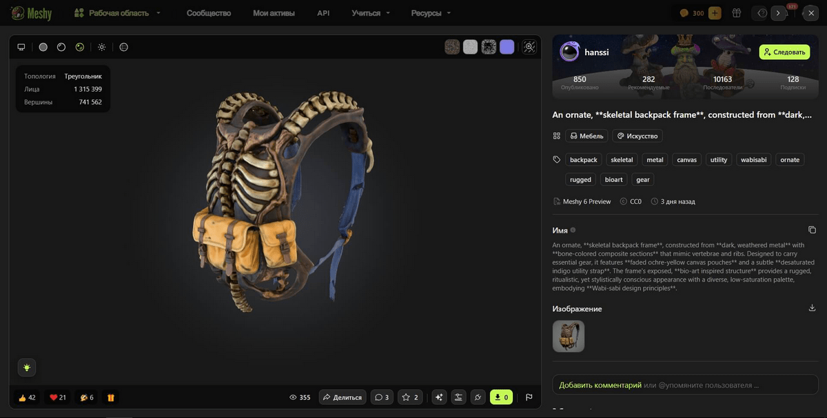 Сервис для создания 3D-моделей с помощью ИИ. Из текстового описания или картинки генерирует полноценные 3D-объекты, готовые для использования в играх и 3D-сценах.