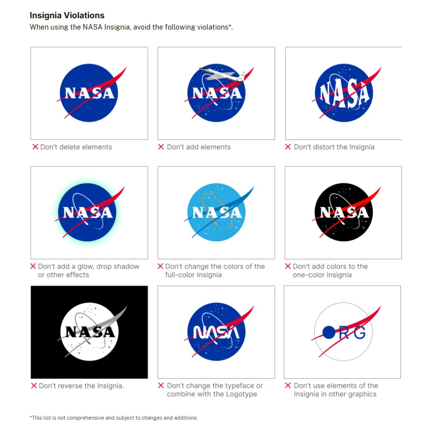 Недопустимые версии логотипа. Это примеры, как нельзя поворачивать, масштабировать или перекрашивать логотип.