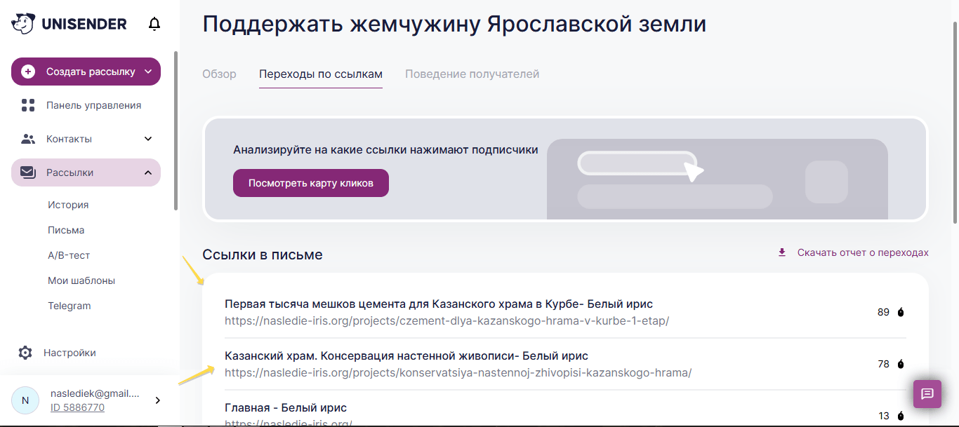 Результат оказался выше среднего. За три дня письмо собрало 115 143 ₽ — люди жертвовали как на укрепление фундамента, так и на сохранение фресок. Обычно через рассылку удаётся собрать 20 000 – 40 000 ₽, так что эффект от кампании был заметен.