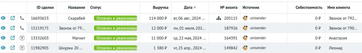 Чтобы получить заявки на изготовление продукции, решили оценить эффективность рассылок с помощью сервиса сквозной аналитики Roistat, тем самым усилив функционал Unisender. Нашей целью был ответный email или телефонный звонок от клиента ― Roistat позволял это отследить.