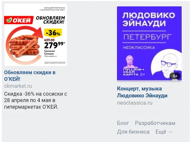 Таргетированная реклама — показывается в соцсетях. Можно выбрать более подходящих пользователей по полу и возрасту, геолокации, интересам, подпискам и другим параметрам.