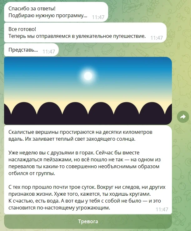 Уже в боте мы даем пользователю материал. А также рассказываем про себя, знакомим человека с продуктом и задаем важные для нас вопросы. Вопросы помогают сегментировать аудиторию и понять, насколько пользователи являются для нас целевыми.