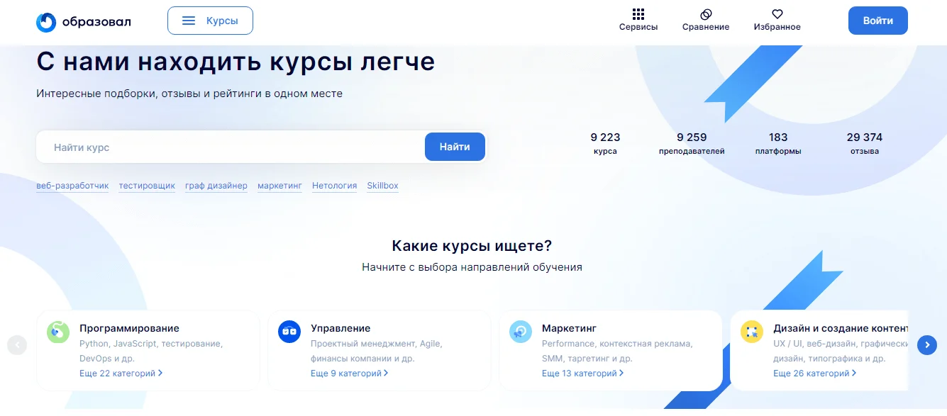 На площадке сейчас около 10 000 курсов от больше чем 90 школ и образовательных платформ, а еще почти 29 000 отзывов.