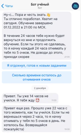На случай когда пользователи откладывают курс, предусмотрена система пуш-уведомлений: