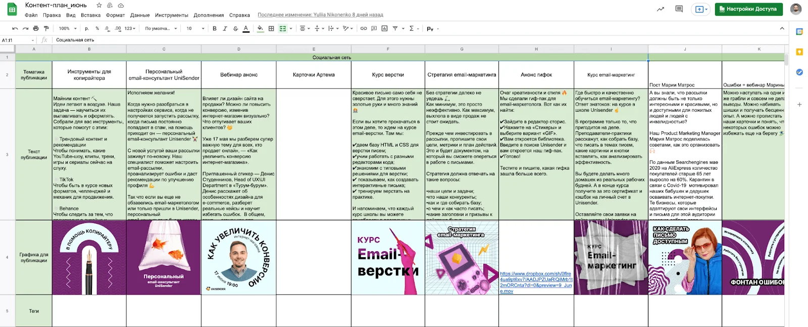Чтобы не было проблем с тем, что постить в соцсетях, можно составить матрицу контента и контент-стратегию. В контент-стратегии должен быть рубрикатор — документ с типами контента, примеры и процентное распределение разных типов контента между собой. Затем создайте и заполните контент-план ближайший период: неделю, месяц или даже год. Компании все реже делают ежедневные посты, уходя в stories, так что на первых порах вы можете ограничиться 10-15 публикациями в месяц.