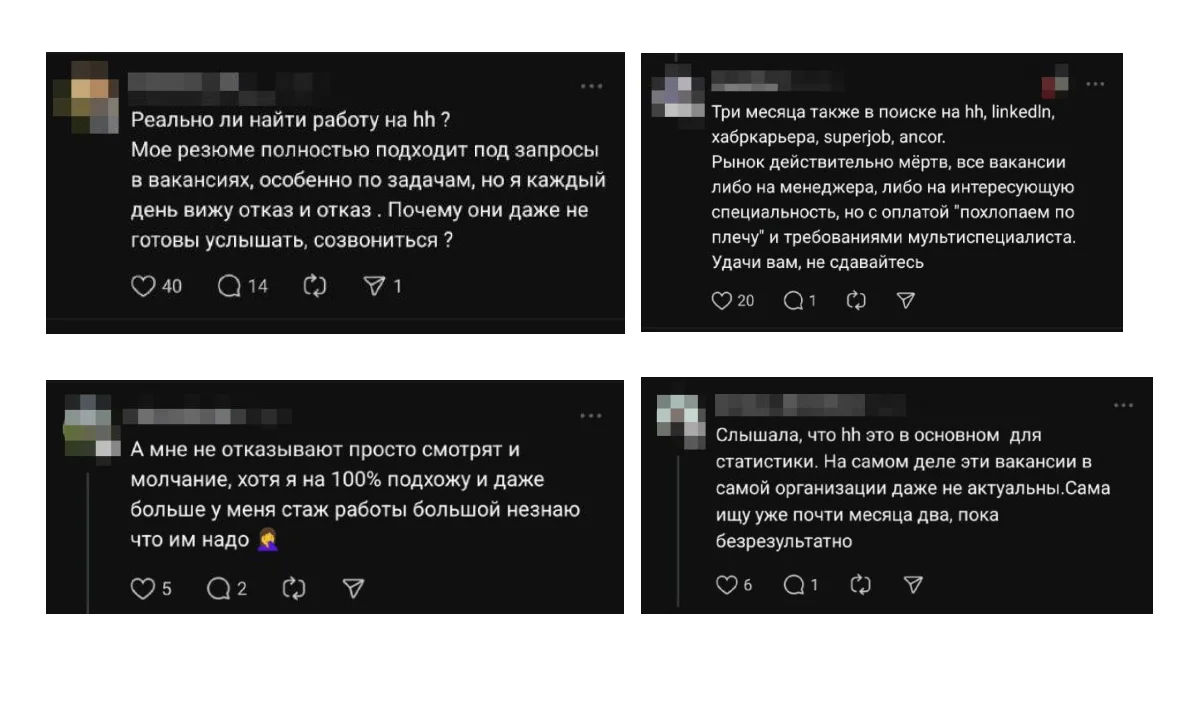 Несмотря на огромную аудиторию платформы, всё чаще в соцсетях можно встретить отзывы пользователей о том, что работодатели не просматривают резюме, не реагируют на отклики или отправляют автоматически отказы.