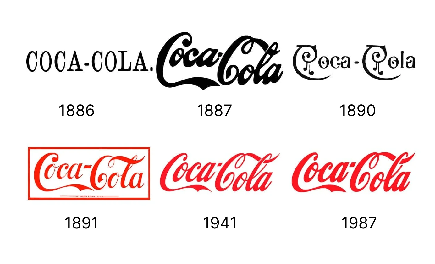 Символ Coca-Cola примечателен своей почти полуторавековой историей. Он был создан в 1887 году. Первая версия логотипа была простой — черно-белая надпись, выполненная популярным в то время шрифтом Spencerian. Но вскоре дизайнер Фрэнк Робинсон перерисовал его, стремясь сделать буквы похожими на музыкальные ноты. С течением времени логотип постепенно преобразовывался, становился более динамичным, но в то же время сохранял прежний стиль. В 1934 году надпись стала цветной, и с тех пор красный — неотъемлемая часть идентичности бренда.